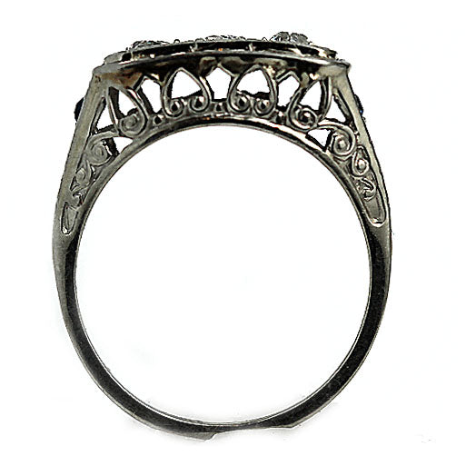 Antique Three Stone .40 CTW Diamond Sapphire Vintage Engagement Ring Heart Motif