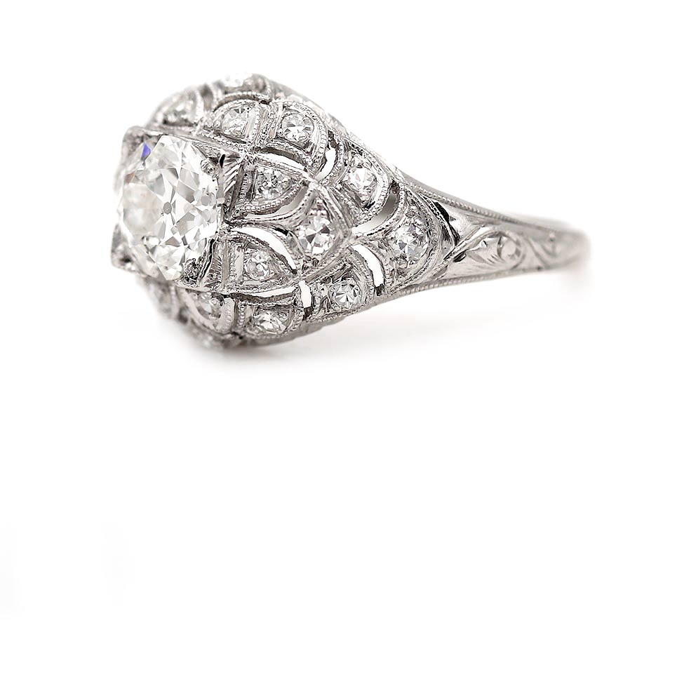 Art Deco 1.17 CTW Old European Cut Diamond Engagement Ring, GIA G/SI1 | Circa 1930s