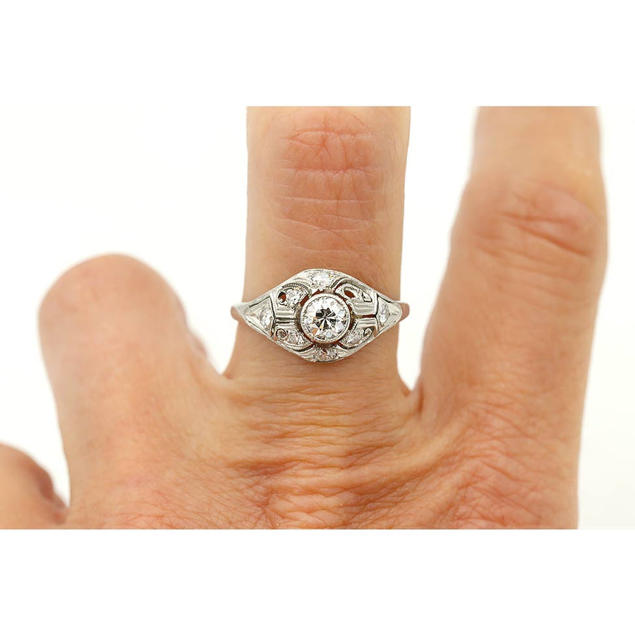 Art Deco .61 CTW Bezel Set European Cut Diamond Vintage Engagement Ring
