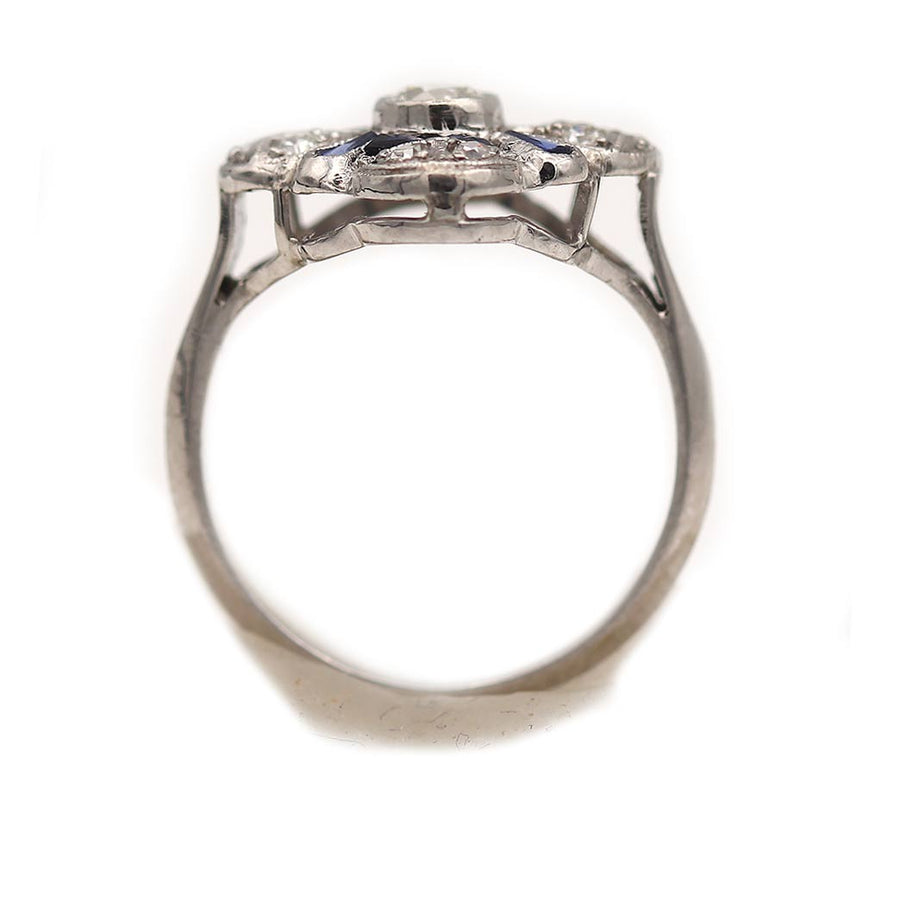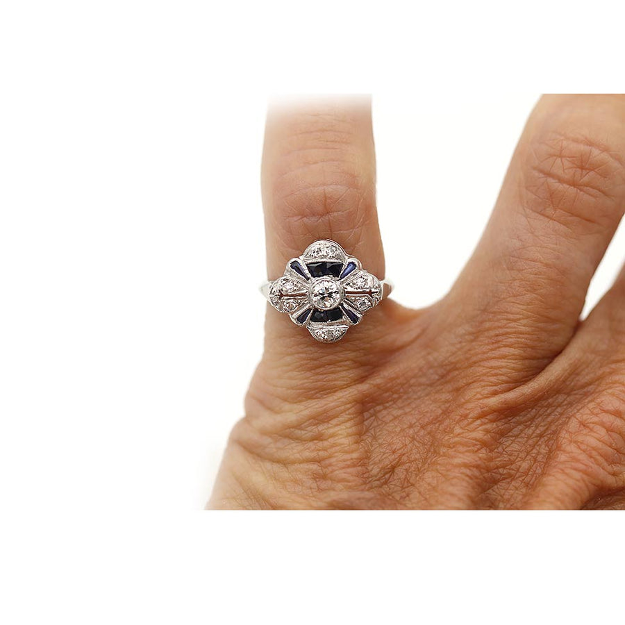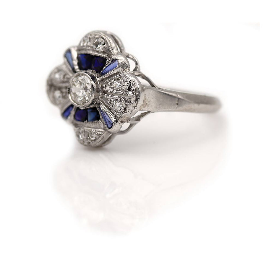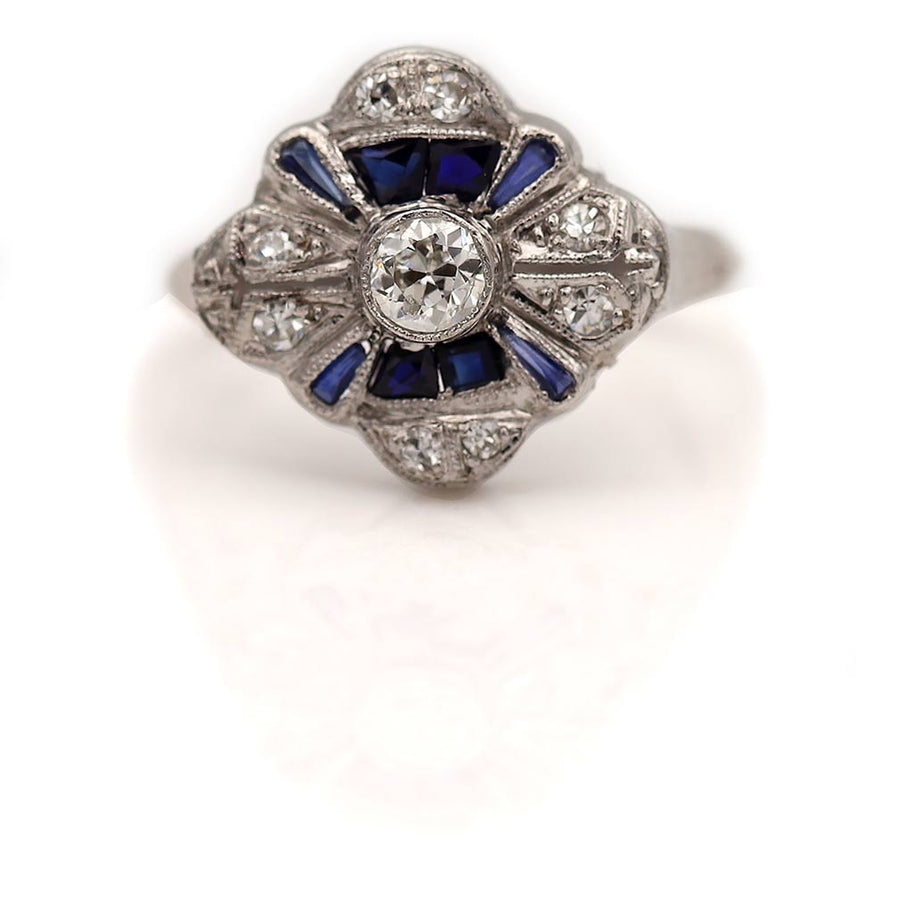 Art Deco .81 CTW Bezel Set European Cut Diamond Sapphire Engagement Ring