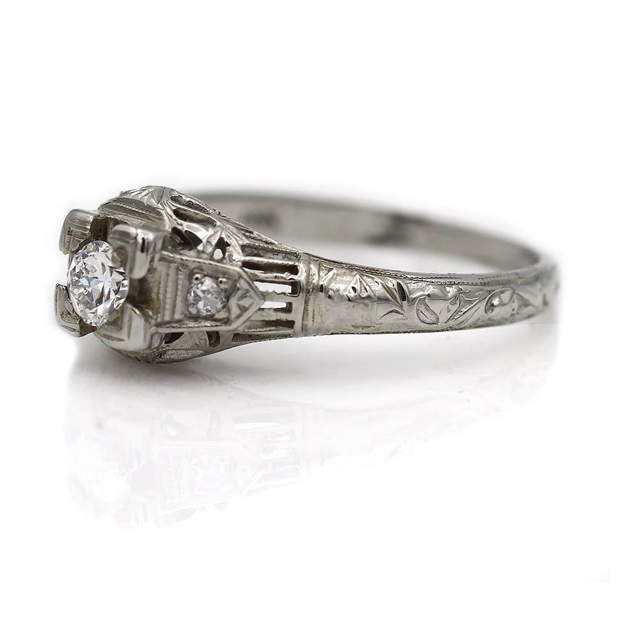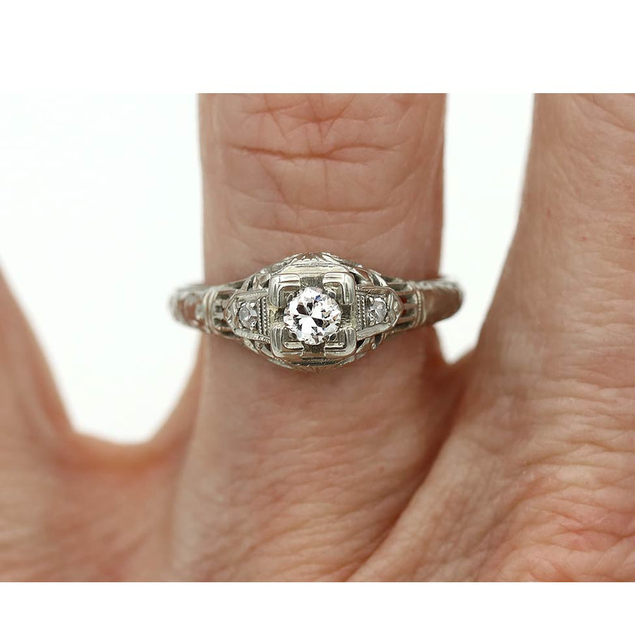 Art Deco .24 CTW Old European Cut Vintage Engagement Ring with Side Stones