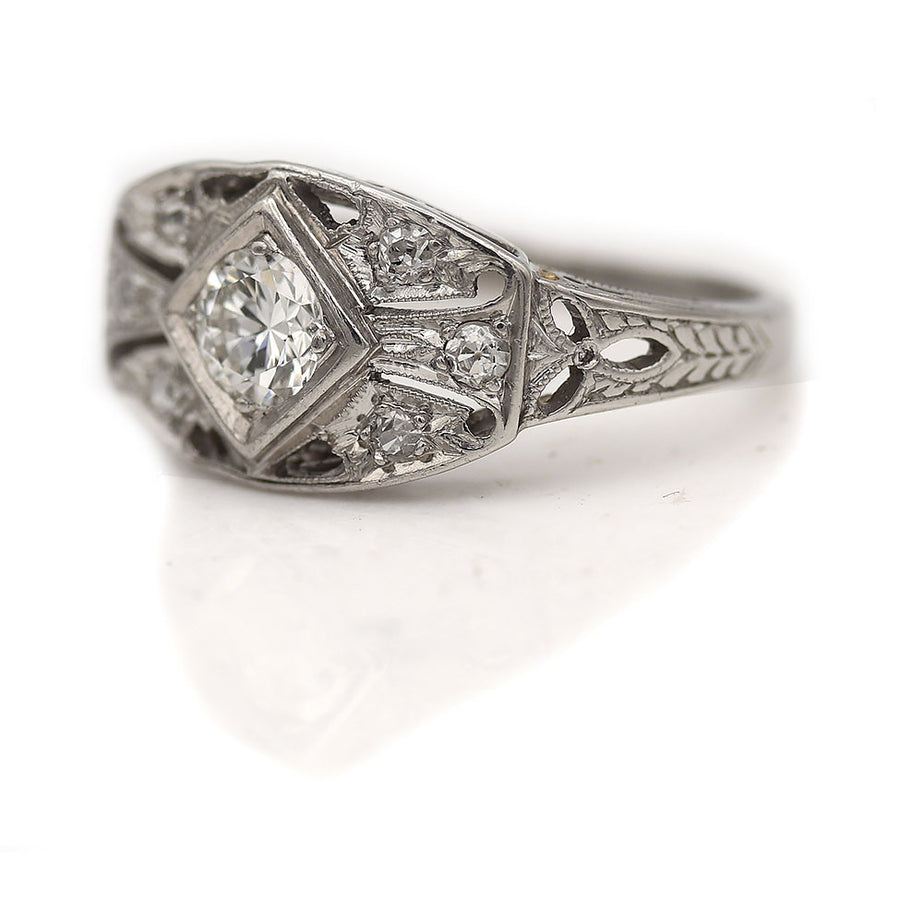 Edwardian .48 CTW Old European Cut Diamond Platinum Antique Engagement Ring