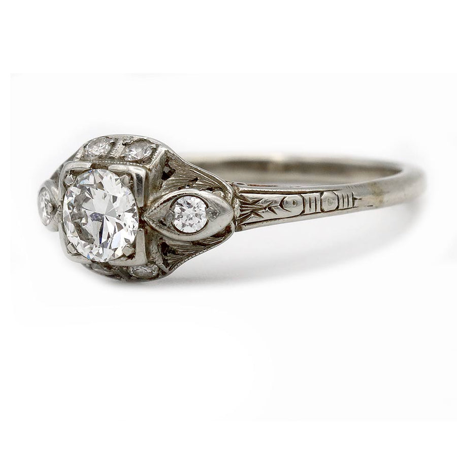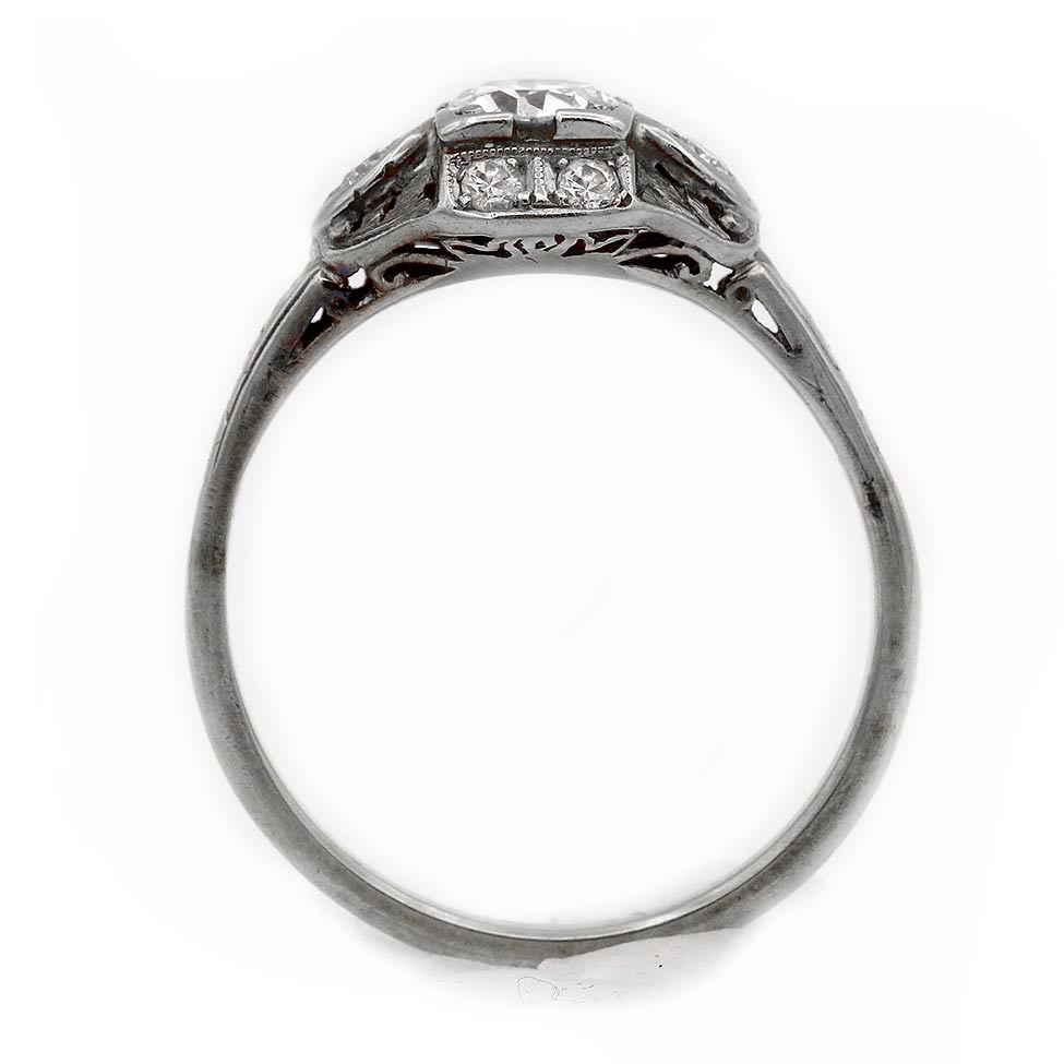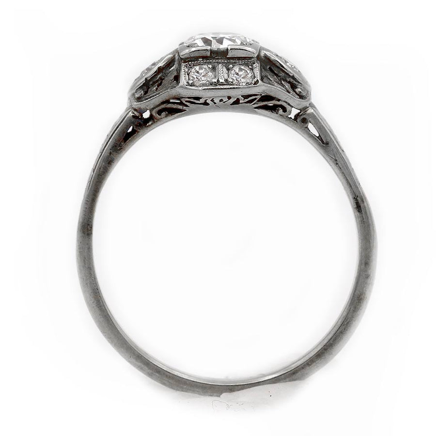 Unique Art Deco .68 CTW European Cut Diamond Antique Engagement Ring with Side Stones