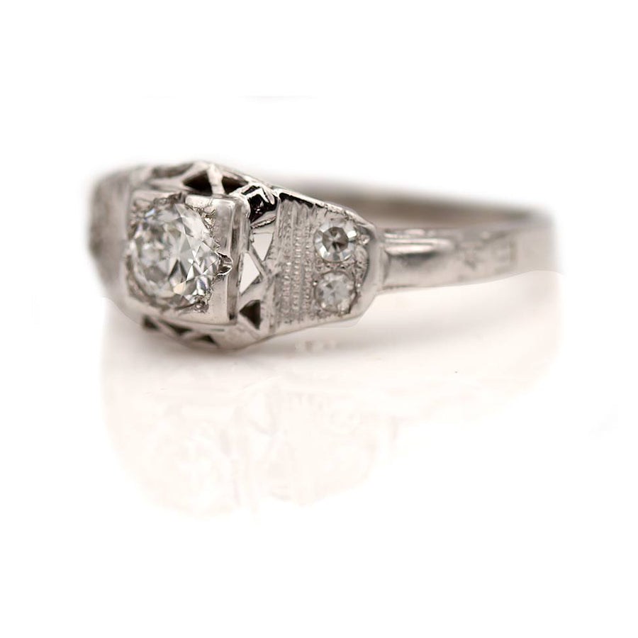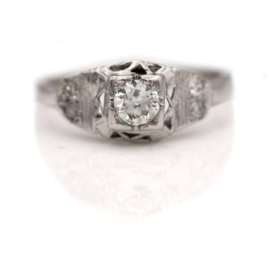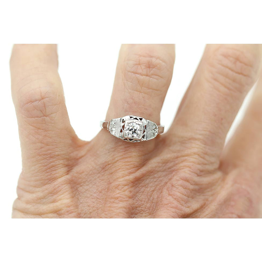 Vintage Geometric Square .43 CTW European Cut Art Deco Diamond Engagement Ring