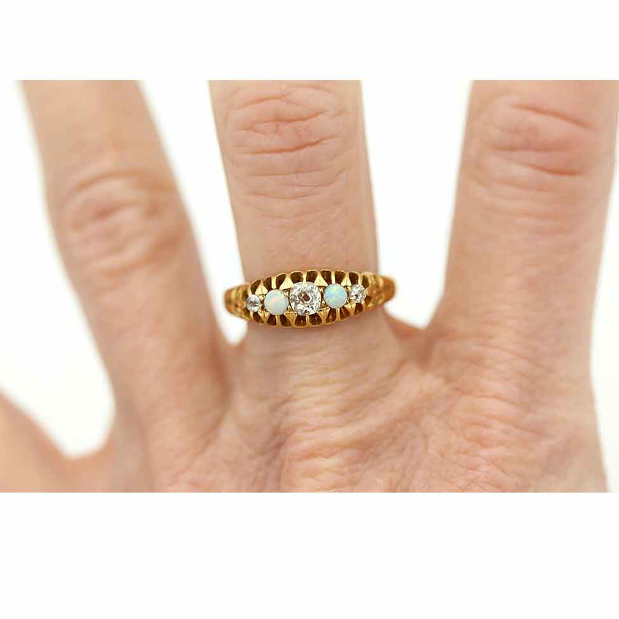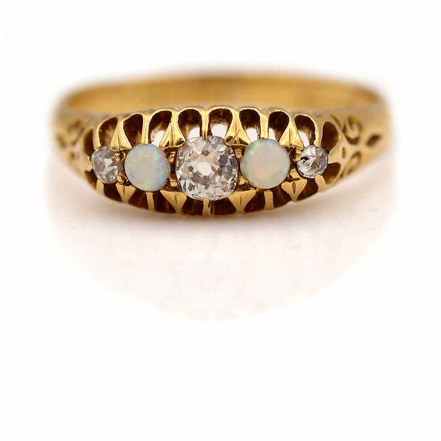 Timeless Victorian Old Mine Cut Diamond & Opal Wedding Ring