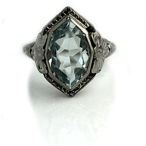 Art Deco 2.75 CTW Rectangular Cut Antique Aquamarine Engagement Ring