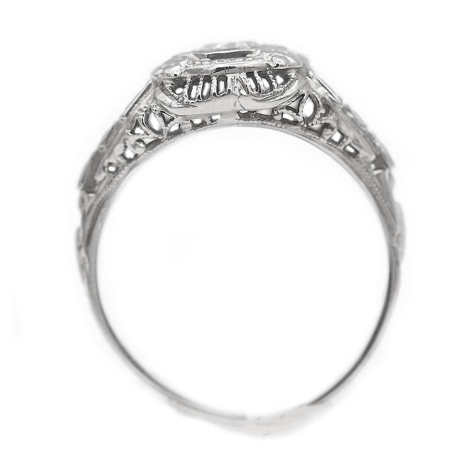 Art Deco .30ct Old European Cut Diamond 18K White Gold Octagon Ring