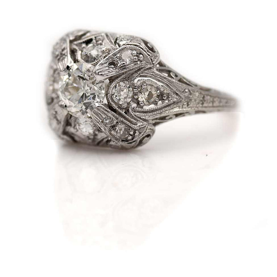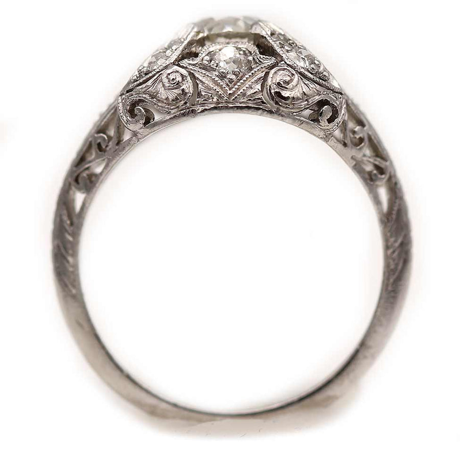 Art Deco .60 Ct Old European Cut Diamond Filigree Platinum Engagement Ring