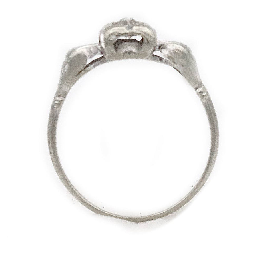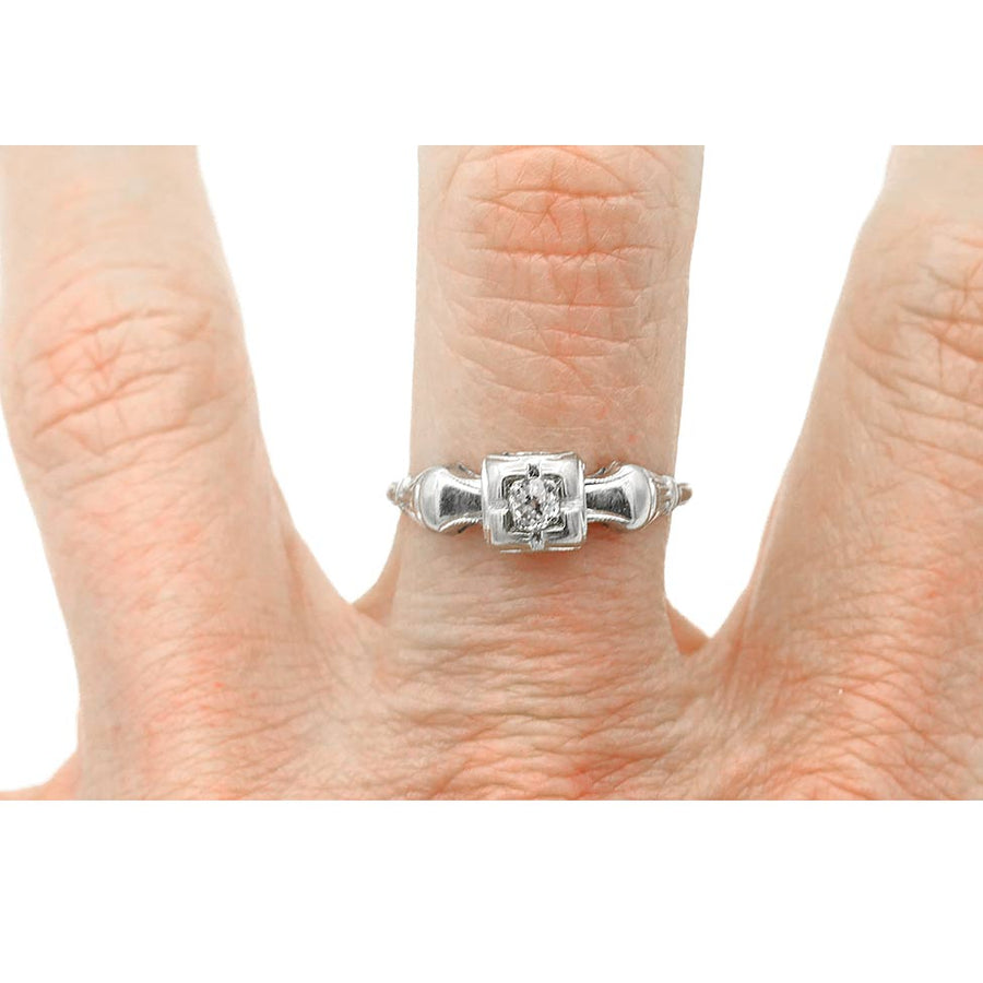 Art Deco .15 Ct Old European Cut Diamond Antique Solitaire Engagement Ring in 18K White Gold
