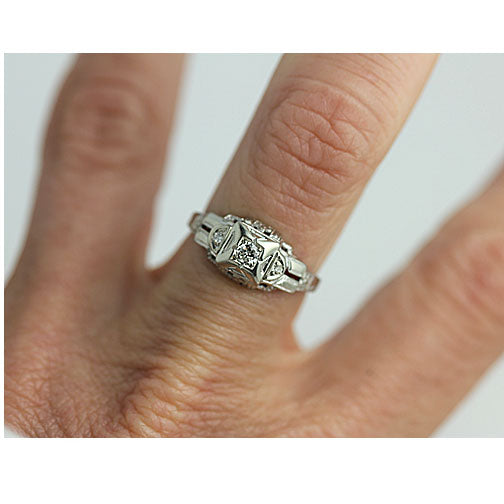 Art Deco Square Frame Diamond Engagement Ring with Side Accents | 1930s