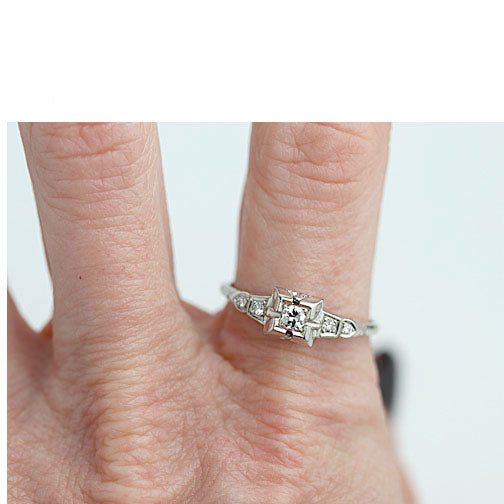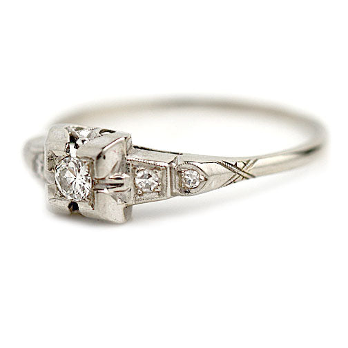 Art Deco .25ctw Old European Diamond Engagement Ring in 18k White Gold