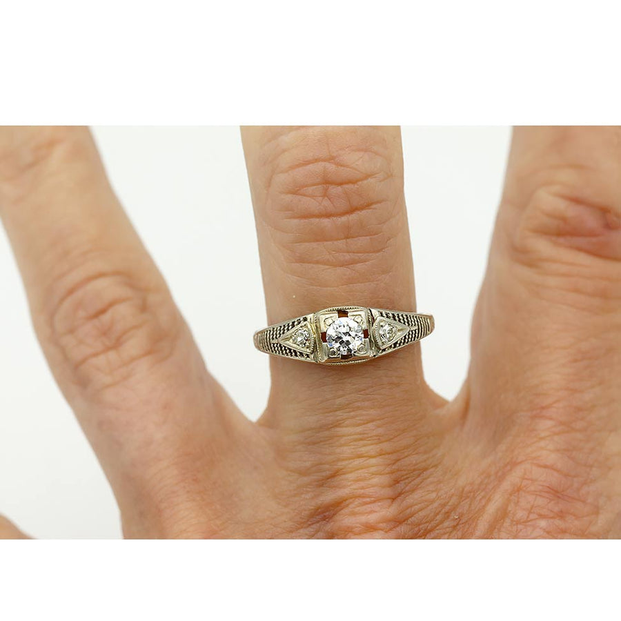 Art Deco .29 CTW Old European Cut Diamond Antique Engagement Ring Intricate Open Metalwork