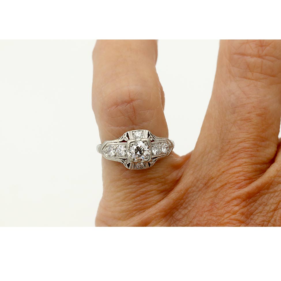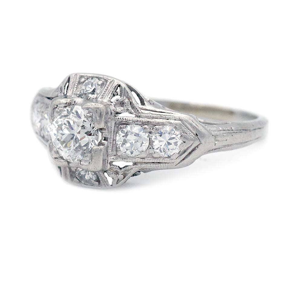 Art Deco Platinum Old European Cut Diamond Engagement Ring | Circa 1930s