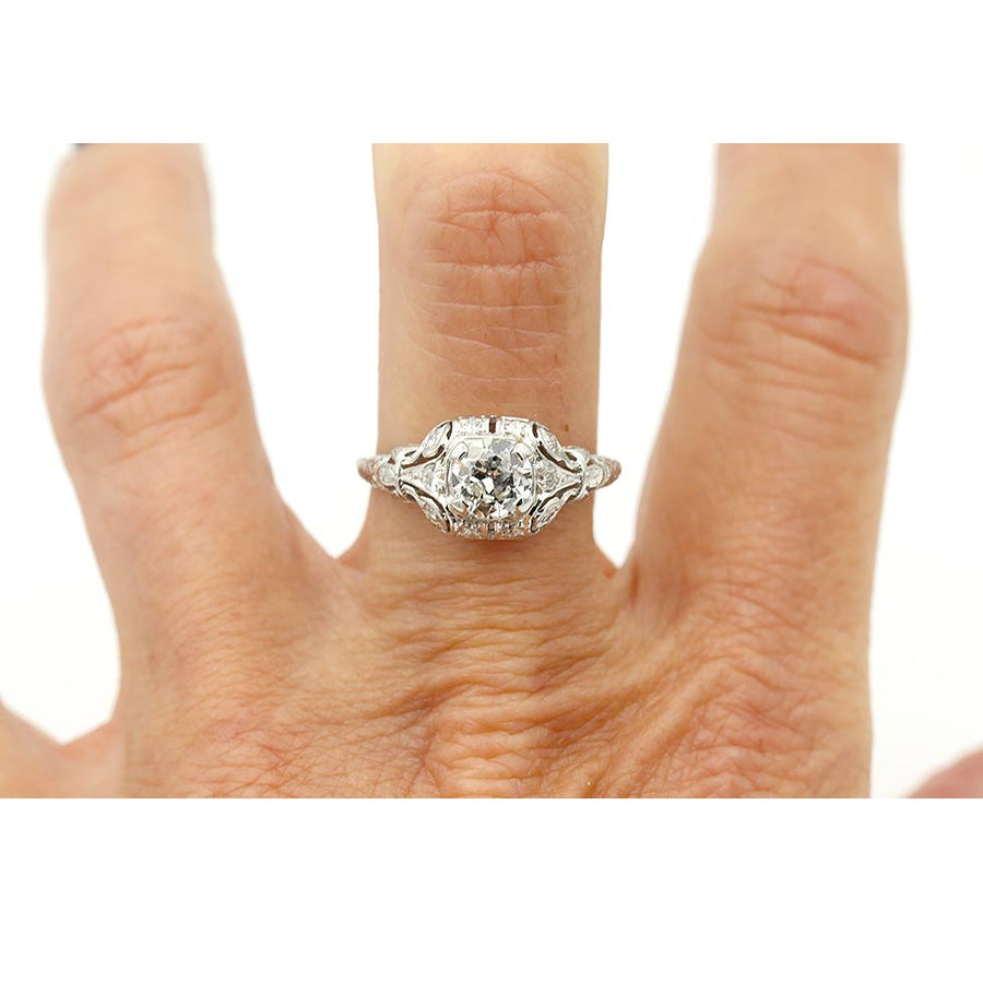 Art Deco .85 Ct Old European Cut Diamond Engagement Ring in Platinum