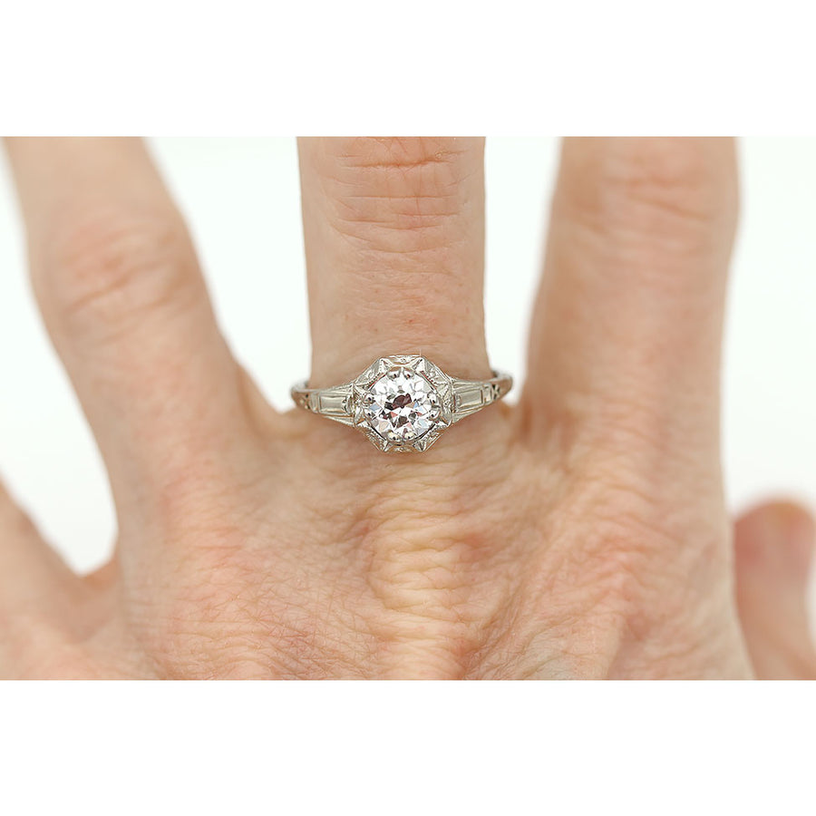 Antique .89ct GIA Old European Cut Diamond - 18k White Gold Art Deco Ring