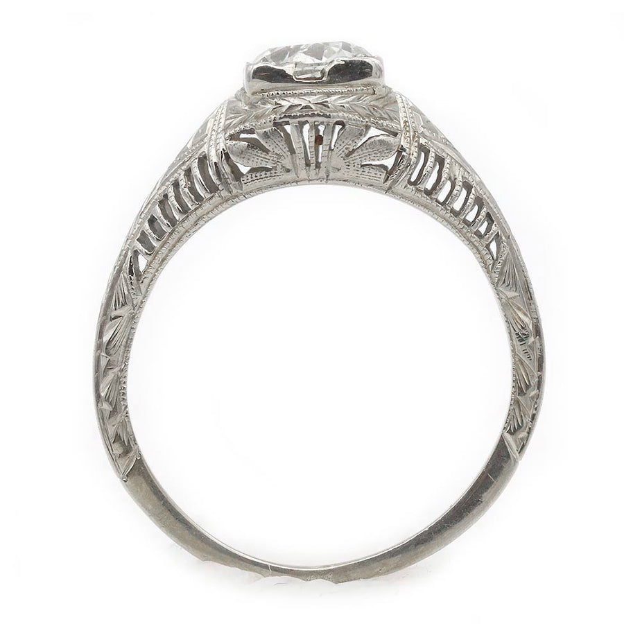 Art Deco Old European Cut Diamond Antique Engagement Ring .95 Ct 14K White Gold