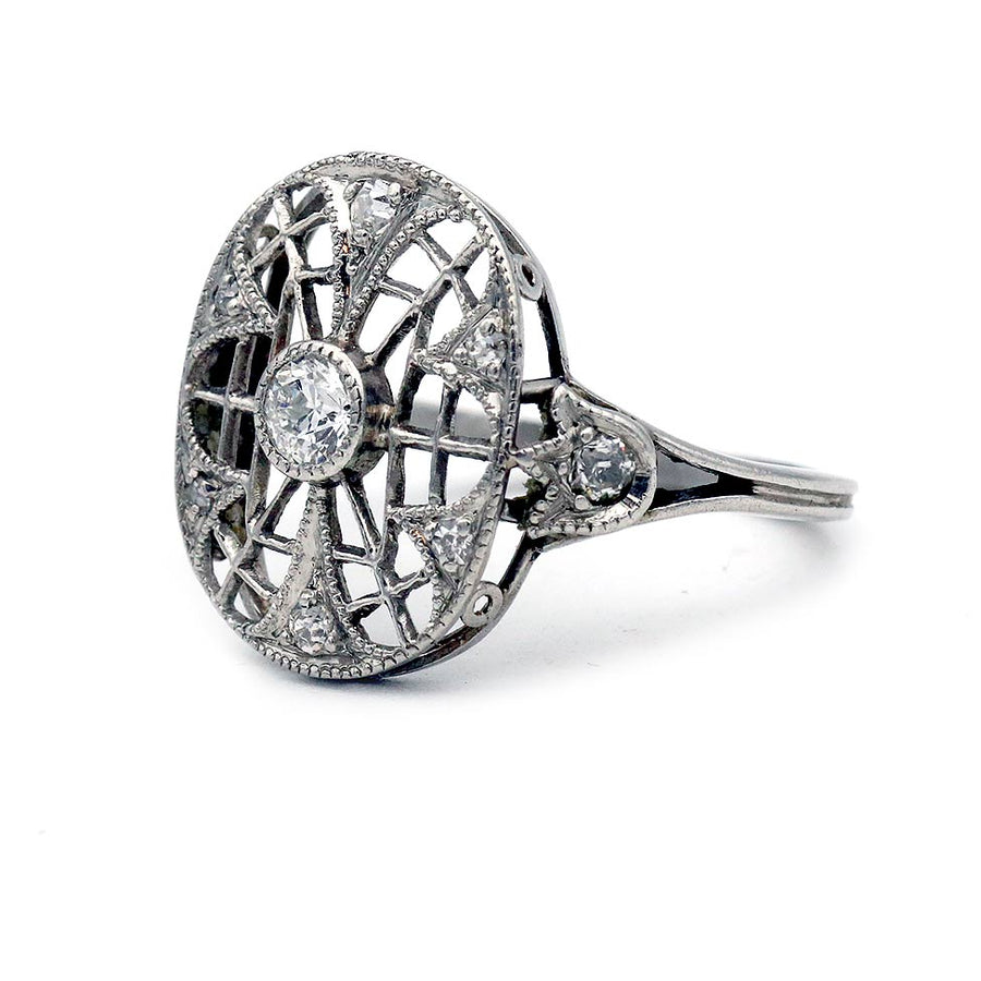 Edwardian Platinum Diamond Dinner Ring | Open-Faced Antique Design