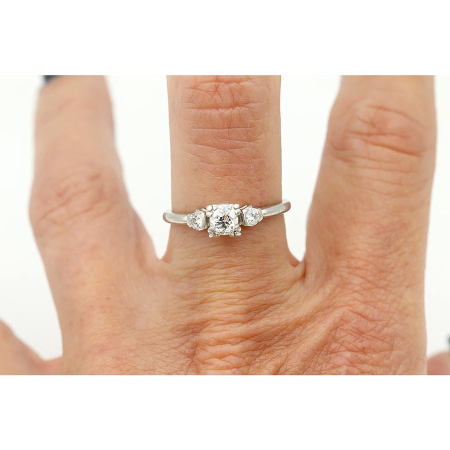 Vintage Old European Cut Diamond Three Stone Engagement Ring .35 CT Platinum Circa 1940s