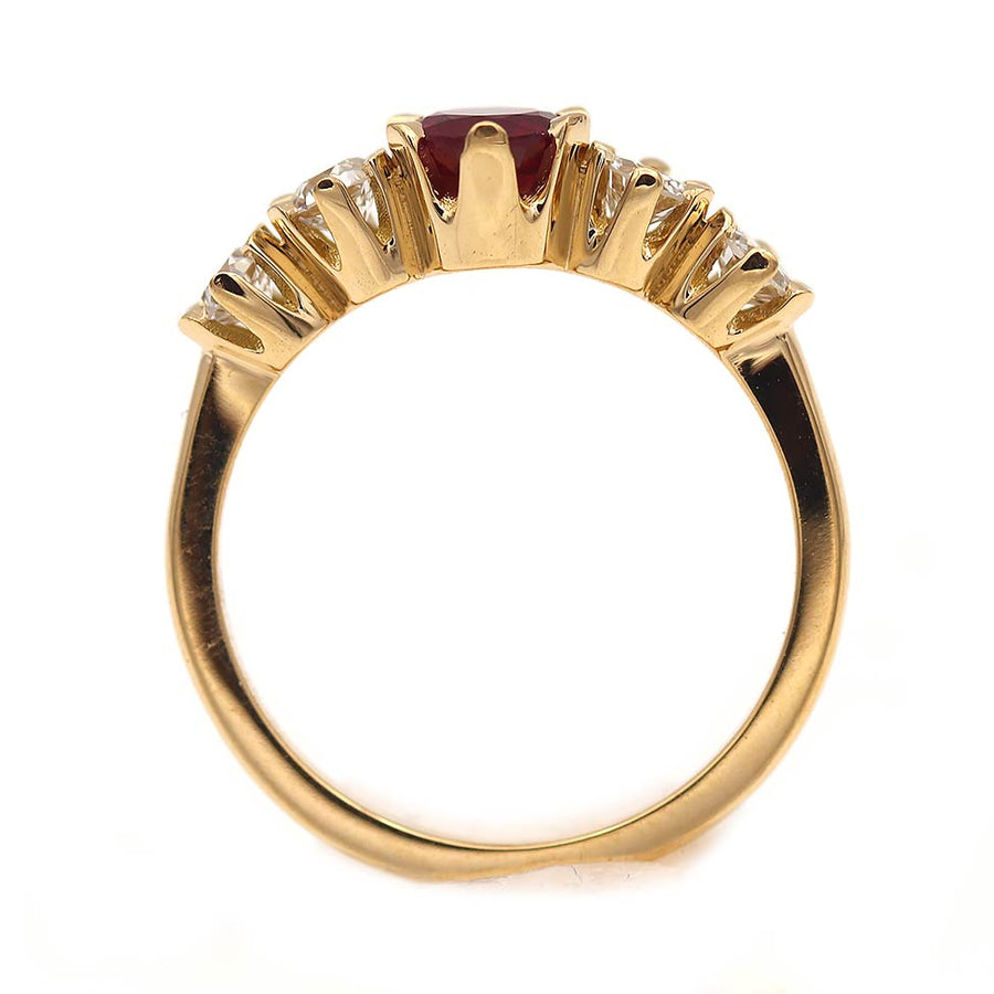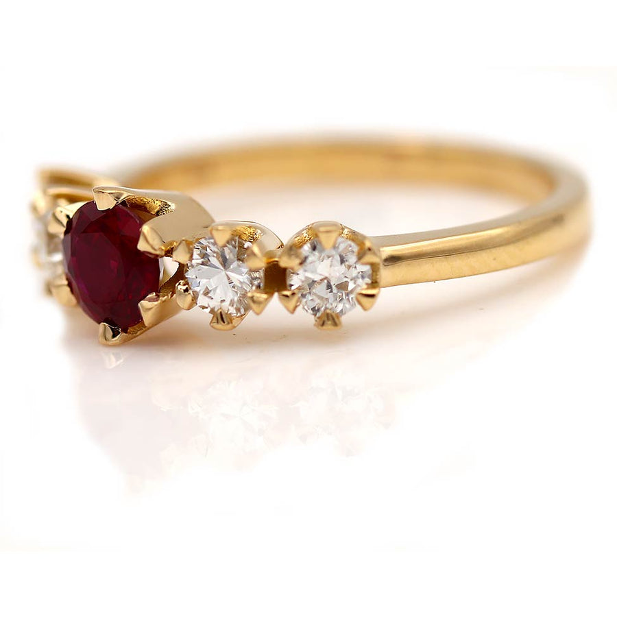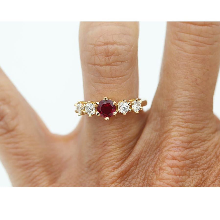 Vintage Style Burma Ruby & Old European Cut Diamond Engagement Ring | Yellow Gold
