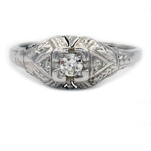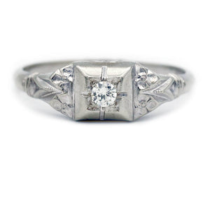 Antique .15 CTW Floral White Gold Vintage Diamond Engagement Ring