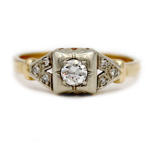 Mid-Century .31 CTW Split Shank European Cut 14 Karat Two Tone Vintage Engagement Ring