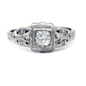 Art Deco .25 CTW Geometric Square Floral Diamond Antique Engagement Ring