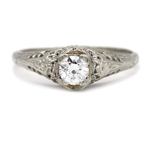 Art Deco .35 CTW Solitaire European Cut Vintage Diamond Ring with Filigree Engravings