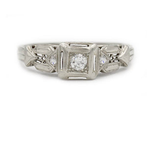 1930s Vintage Diamond Engagement Ring 18K White Gold .08ct F/VS2