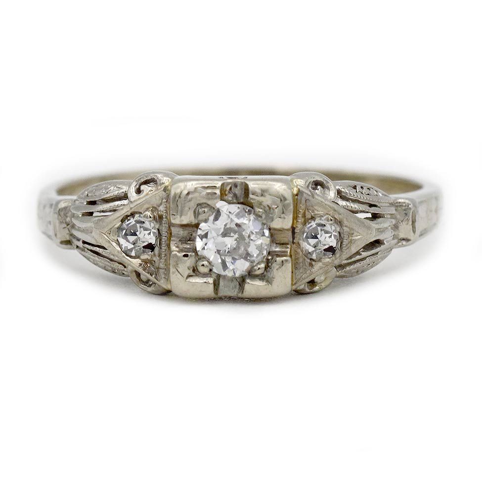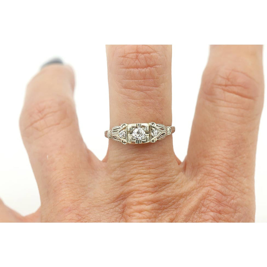 Antique .24 CTW Mine Cut Vintage Diamond Engagement Ring with Side Stones