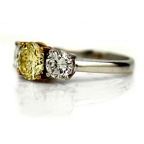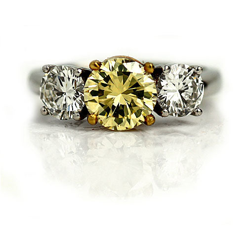 Fancy Greenish Yellow Diamond Vintage Engagement Ring 1.36ct SI1 GIA