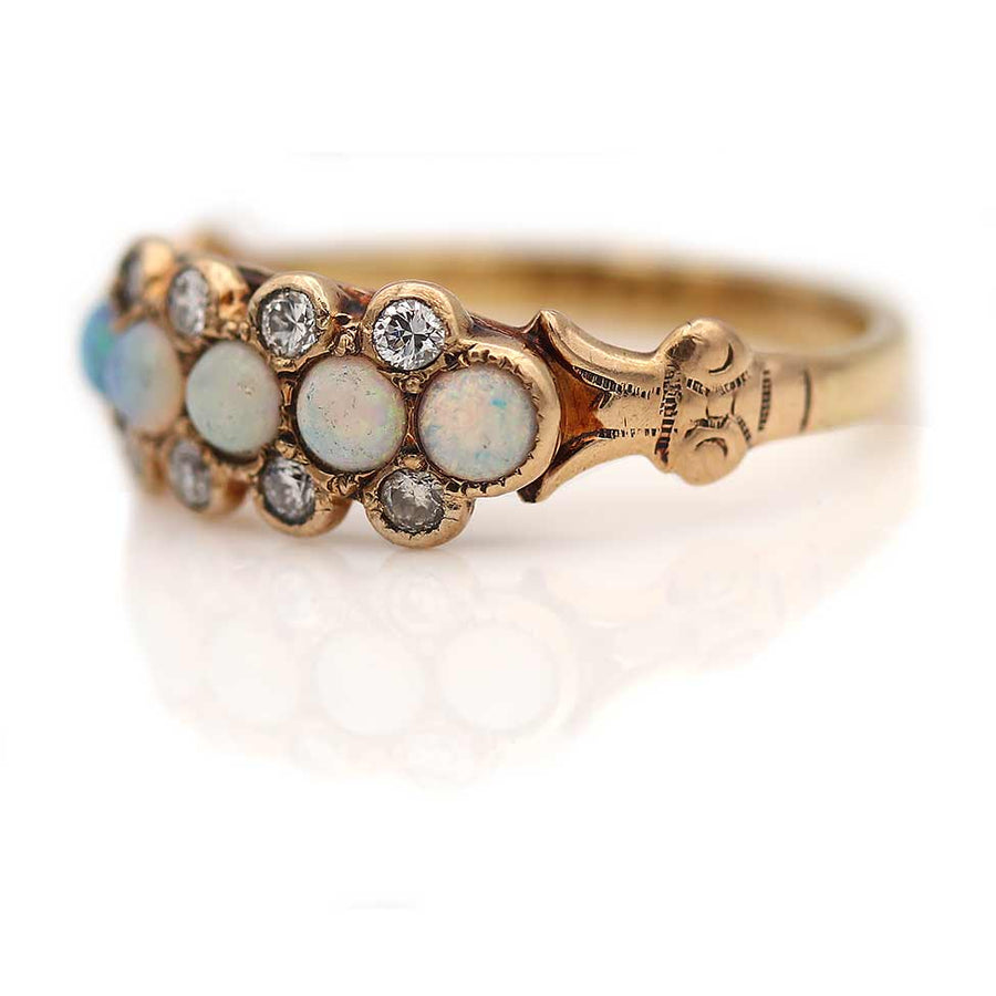 Dainty Victorian Opal & Mine Cut Diamond Wedding Band