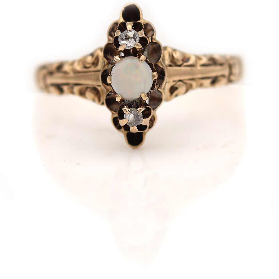 Victorian .40 CTW Opal Rose Cut Diamond Antique Engagement Ring Circa 1900s