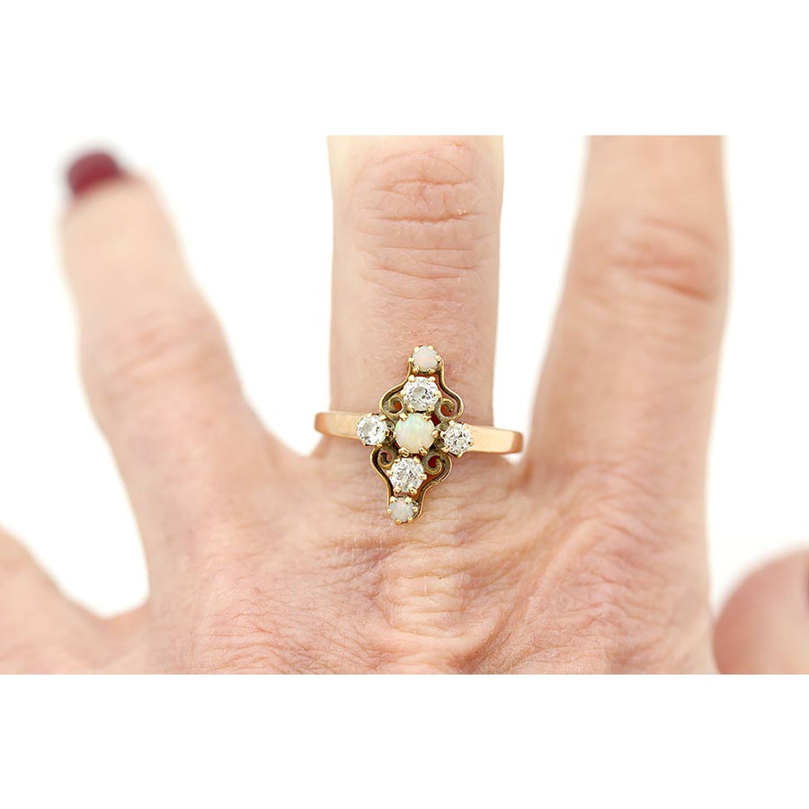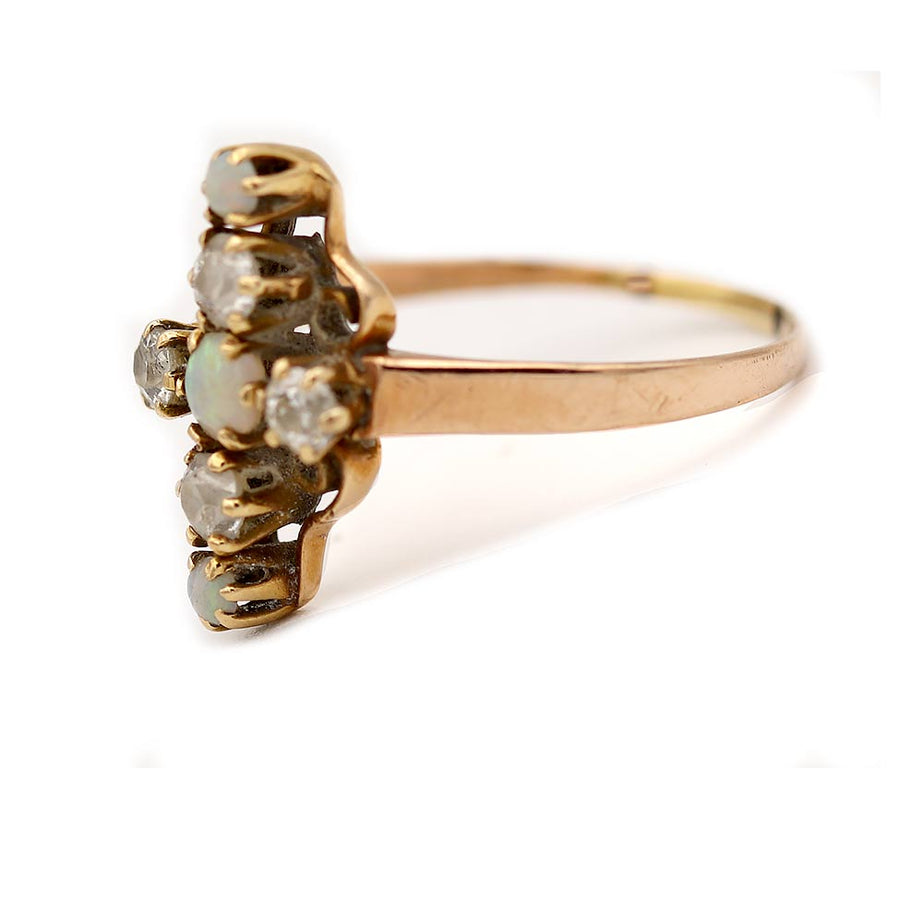 Victorian Opal & Mine Cut Diamond Antique Dinner Ring | Rosy Yellow Gold | Circa 1900s