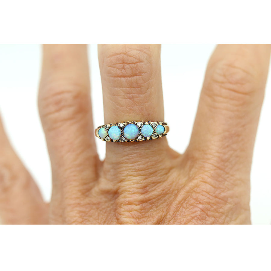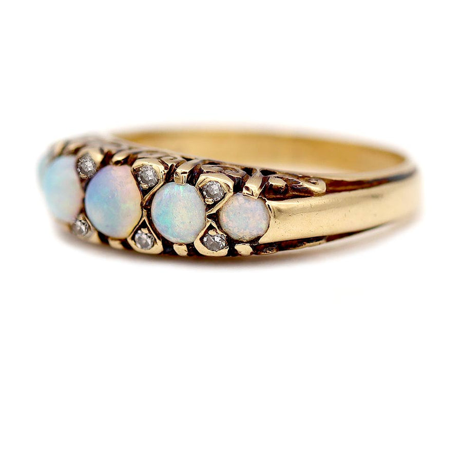 Vintage Opal & Diamond Wedding Ring in 14K Yellow Gold