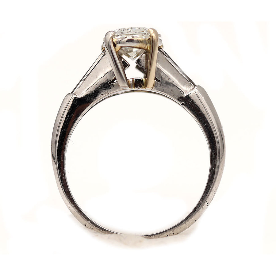 Mid-Century 1.40 CTW Three Stone Oval Diamond Engagement Ring with Baguettes GIA H/VS2