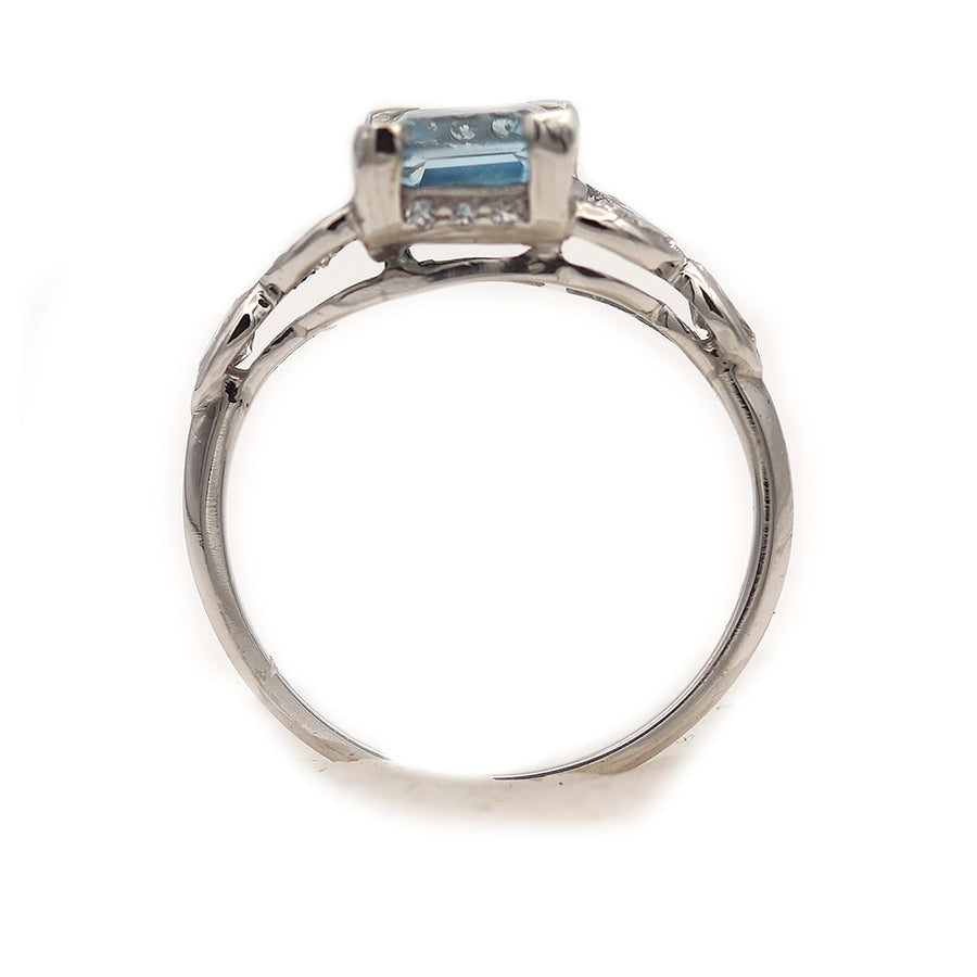 Art Deco Aquamarine & Diamond Engagement Ring in Platinum | Circa 1930s