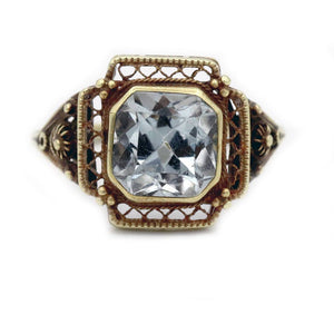 Mid-Century Square Cut Aquamarine Engagement Ring | Rosy Yellow Gold | 1940s