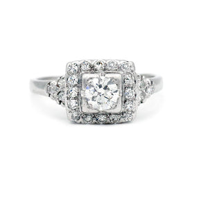 Art Deco Engagement Ring .87 CTW Old European Cut Diamond Platonum Antique Engagement Ring GIA H/SI1
