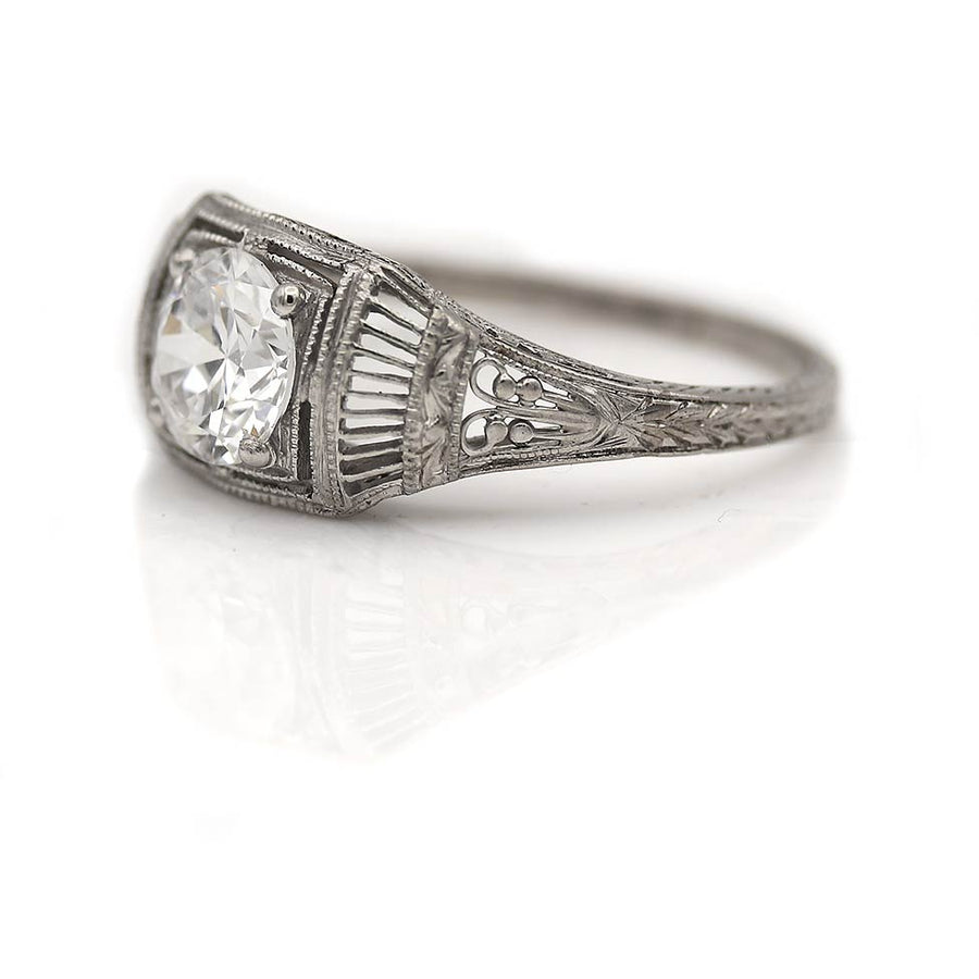 Antique 1.00 CTW Old European Cut Diamond Platinum Art Deco Engagement Ring GIA E/VS1