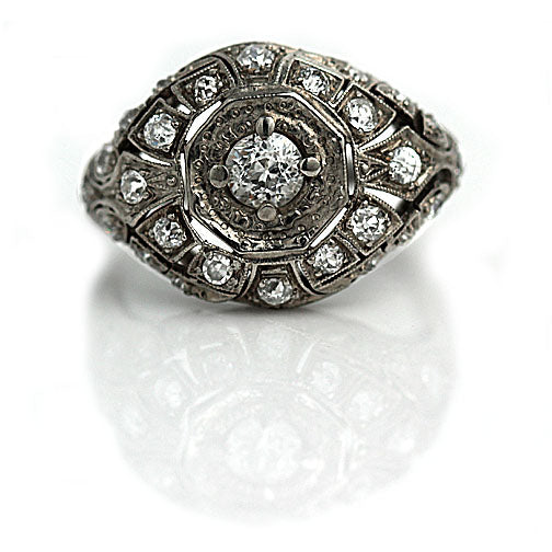 Antique 1.20 CTW Two Tiered Platinum Art Deco Bombe Ring