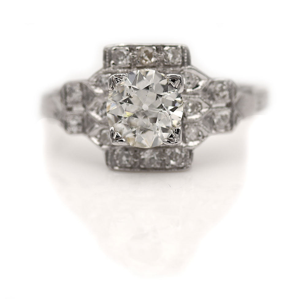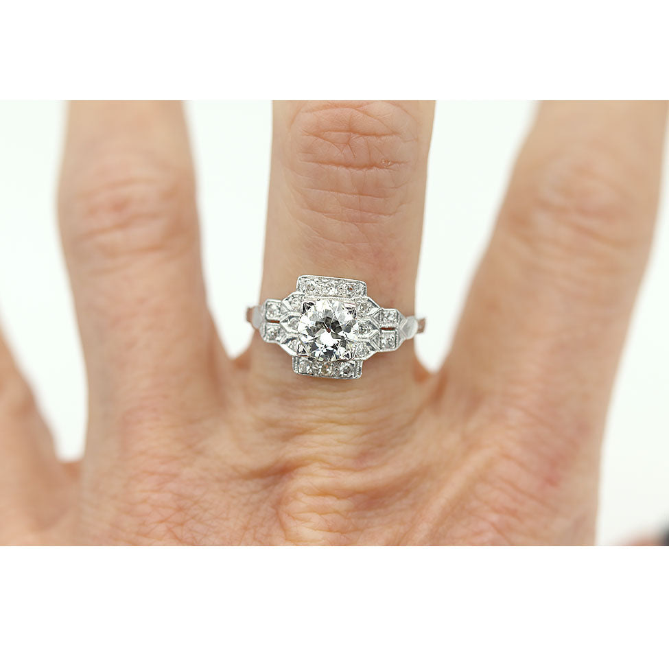 Antique 1.42 CTW Halo European Cut Platinum Art Deco Engagement Ring