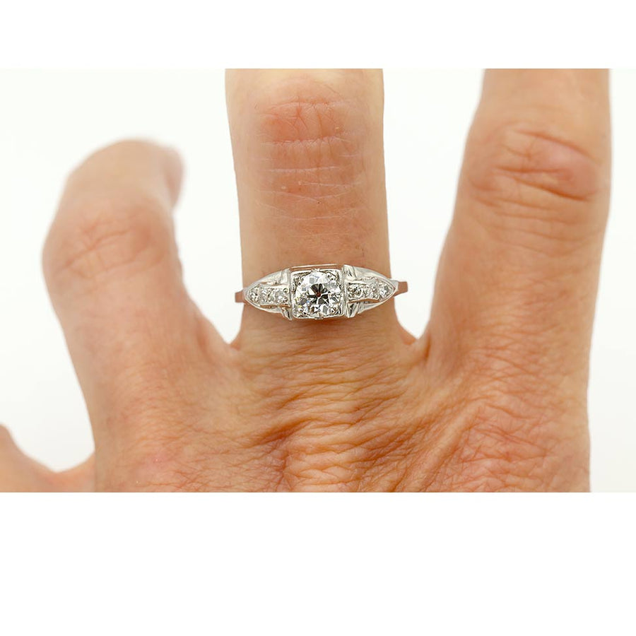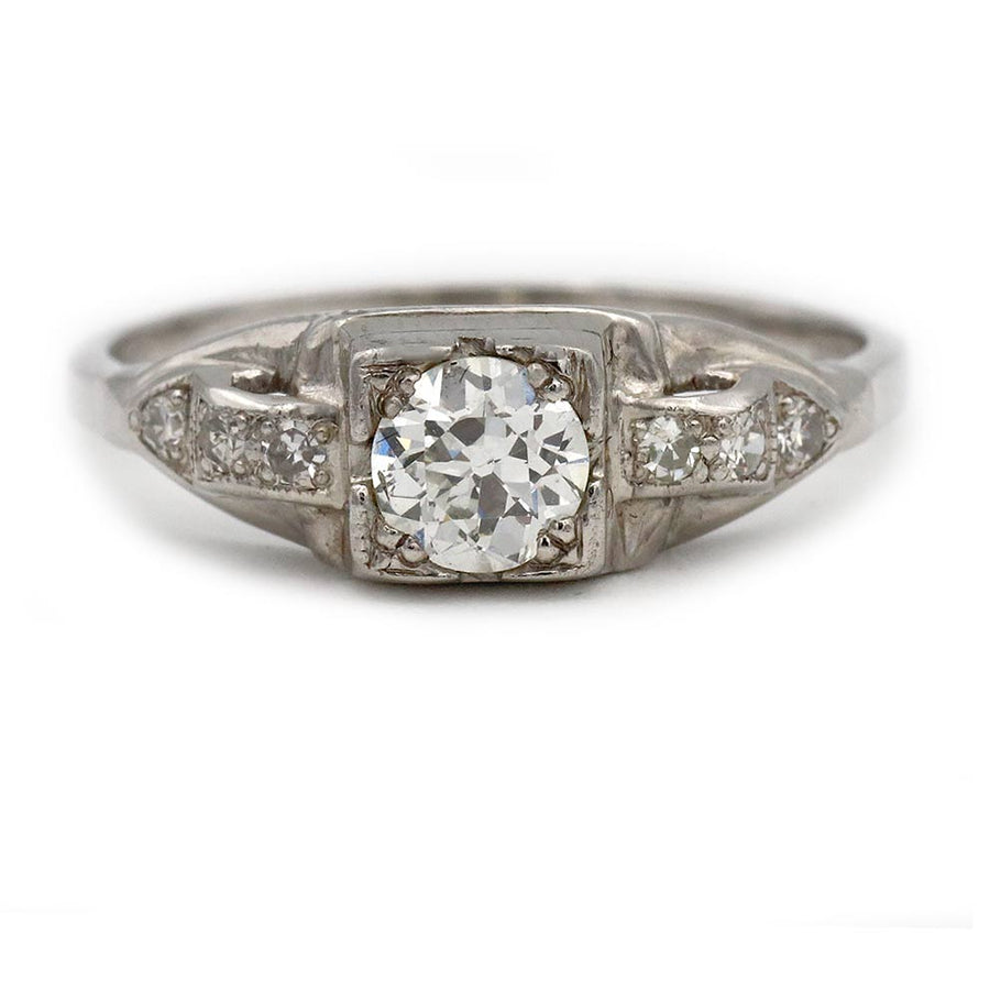 Antique .62 CTW Platinum Diamond Art Deco Engagement Ring with Side Stones