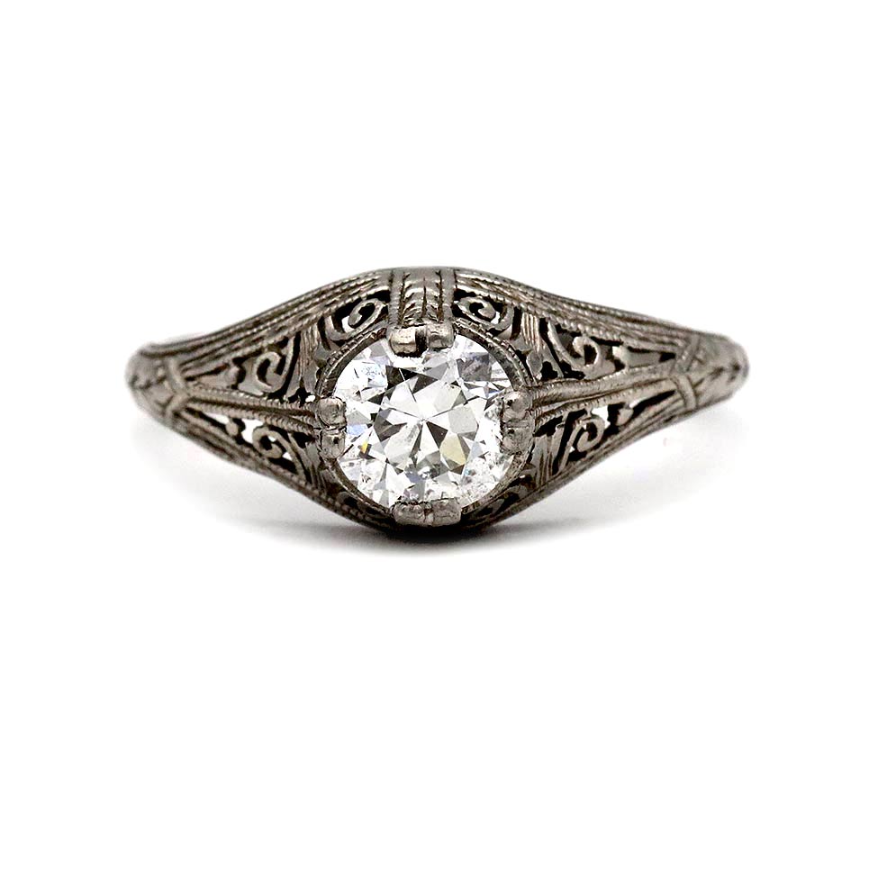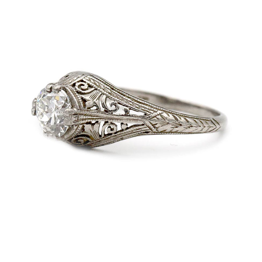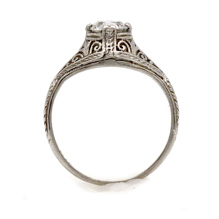 Antique .69 CTW Solitaire Vintage Engagement Ring Filigree Engravings GIA G/SI1