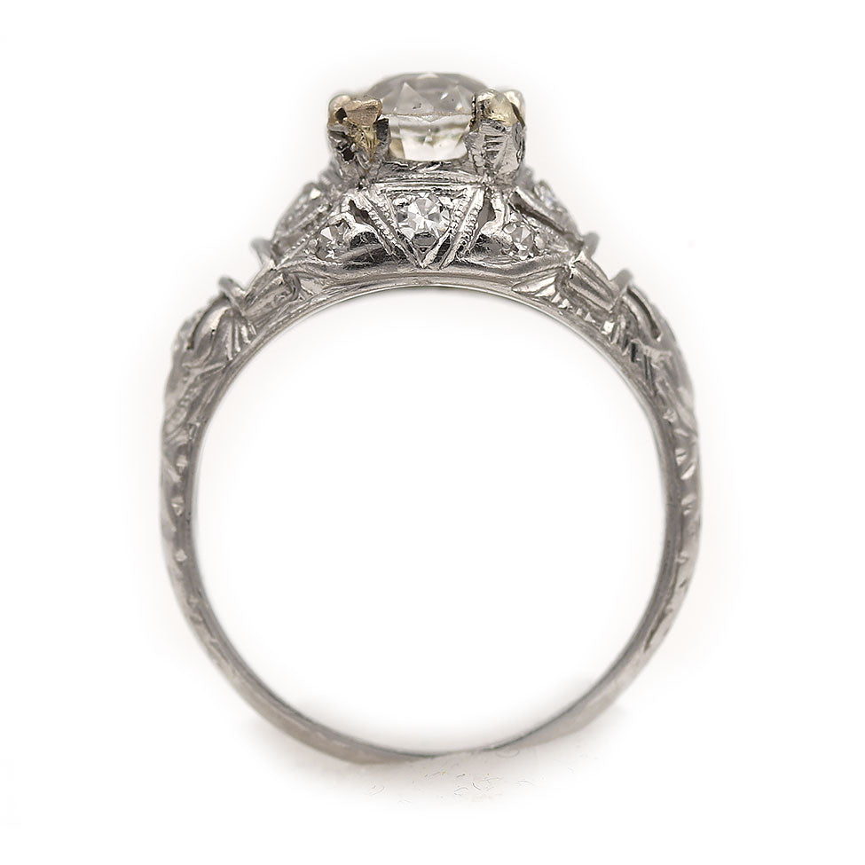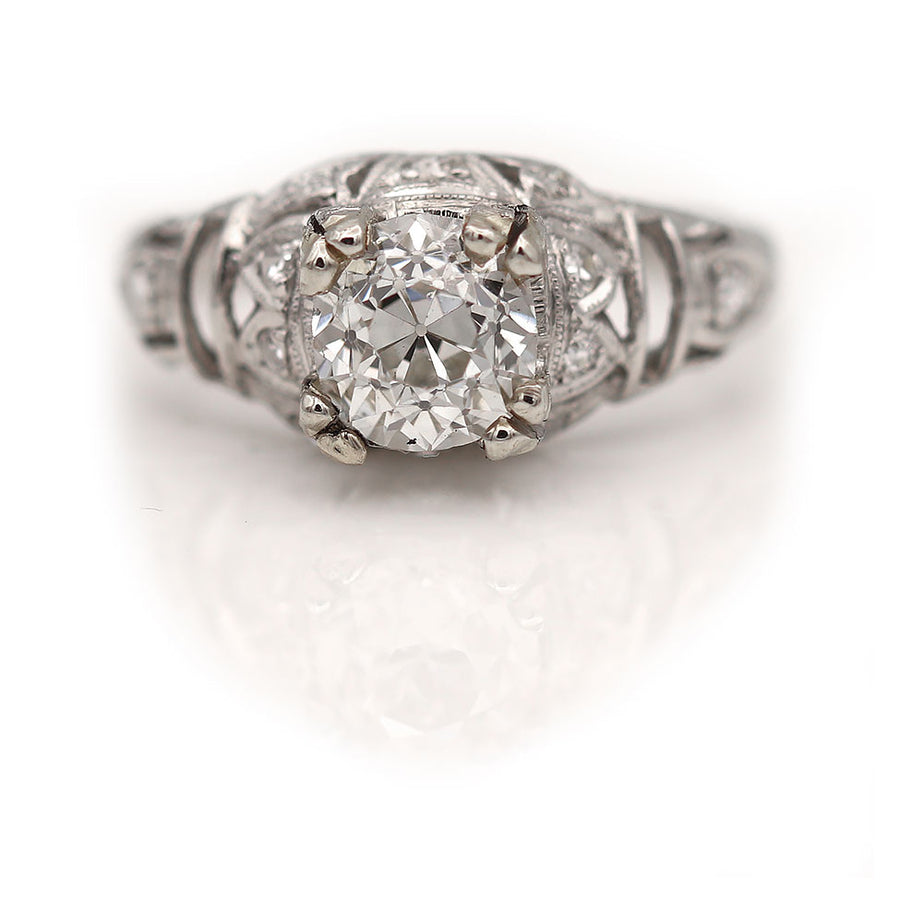 Art Deco 1.03 CTW European Cut Diamond Platinum Vintage Diamond Engagement Ring GIA I/VS2