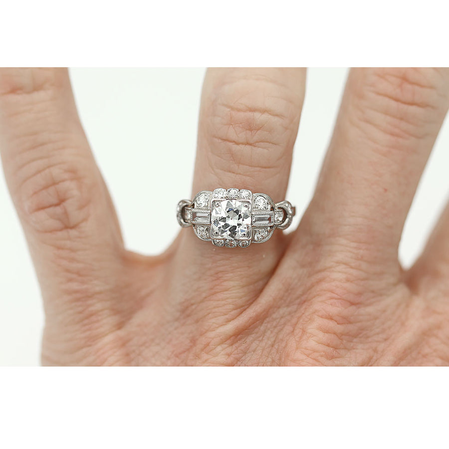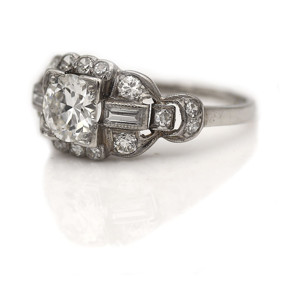 Art Deco 1.17 CTW Old European Cut Baguette Platinum Vintage Diamond Engagement Ring