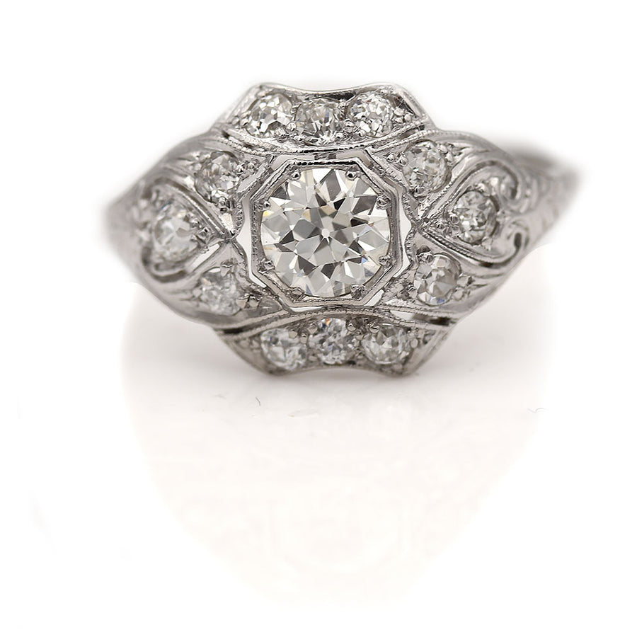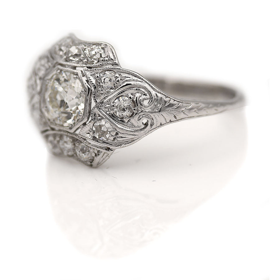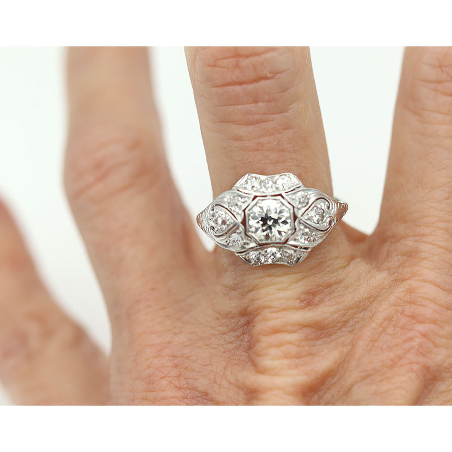 Art Deco 1.20 CTW European Cut Diamond Platinum Antique Engagement Ring