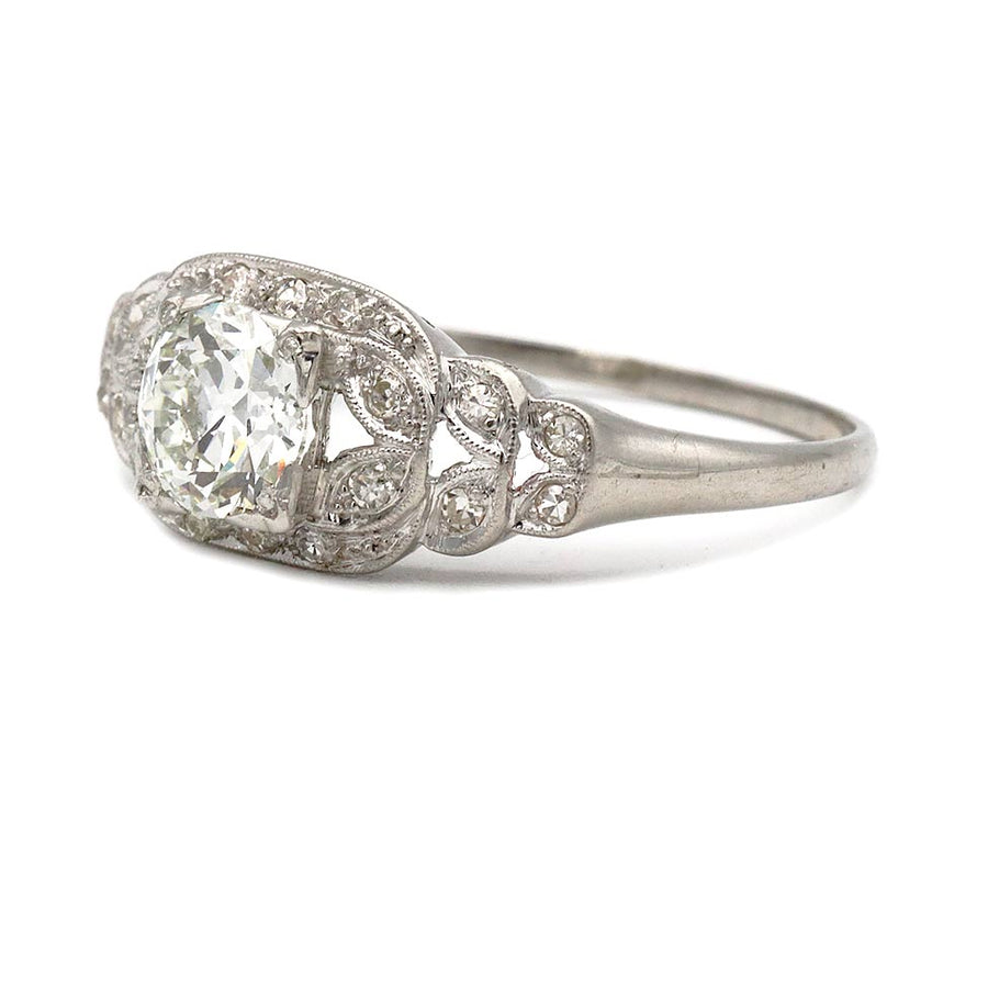 Art Deco 1.38 CTW European Cut Diamond Engagement Ring in Unique Navette Frame Platinum Setting