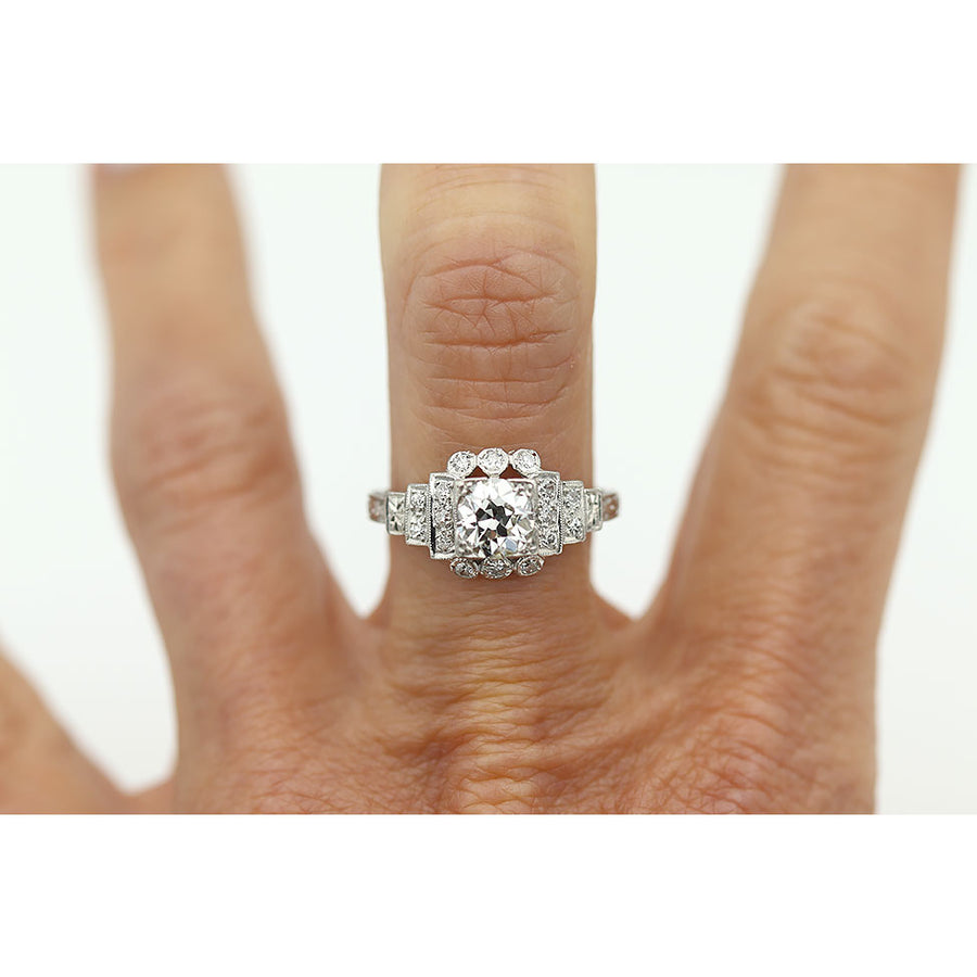 Art Deco 1.44 CTW European Cut Diamond Vintage Engagement Ring with Tiered Side Stones
