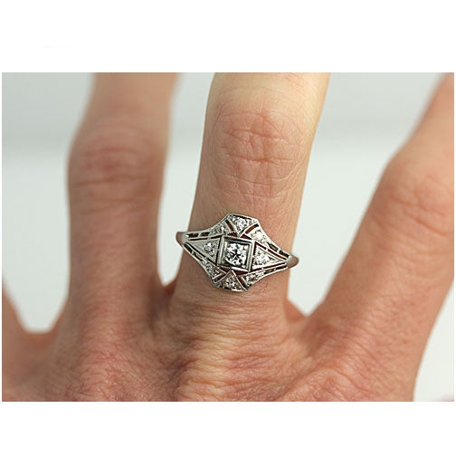 Art Deco .15 CT Euro Cut Diamond Platinum Diamond Engagement Ring