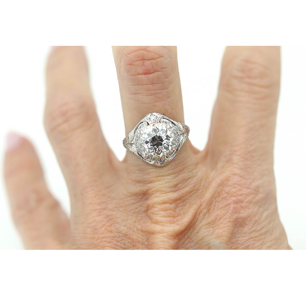 Art Deco 2.35 CTW Old European Cut Diamond Vintage Engagement Ring Platinum GIA I/I1